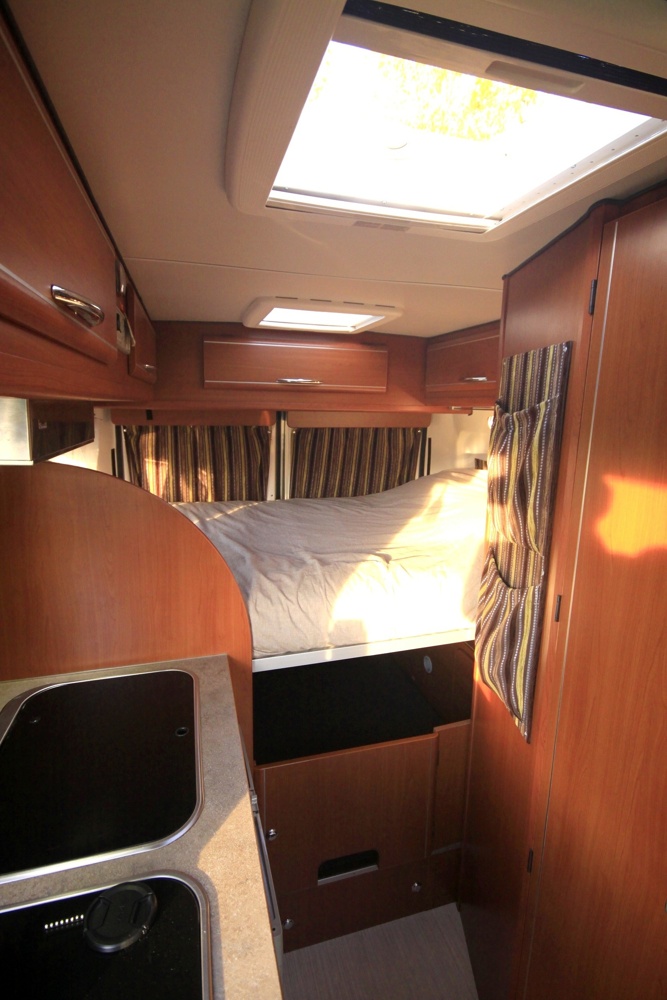 Deux lits permanents à l'arrière: - un lit deux places monté sur verins pour accéder plus facilement à l'espace qui est en dessous - un lit une place pour un enfant sous le lit arrière option: - un lit pour un second enfant à placer entre les sièges avant - un lit deux places qui remplace l'espace repas