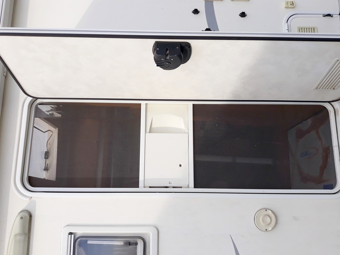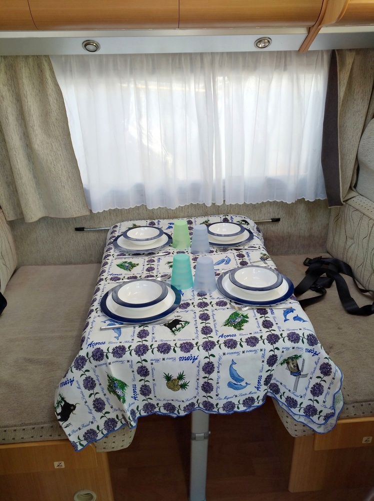Autocaravana muito espaçosa, com 6 lugares de viagem e 6/7 de dormida. Totalmente equipada com forno elétrico, fogão a gás de três bicos, frigorifico a gás/ 12V/220V, com congelador separado, aquecimento de águas e célula a gás, sanita química, Tv LCD com recetor TDT e Leitor de DVD. Ar condicionado na cabine e GPS. 1 Cama com 2/3 lugares no capucino, 2 beliches e 1 cama de dois lugares convertível na mesa de refeições. Motor 2.8 JTD com boas prestações e bons consumos.