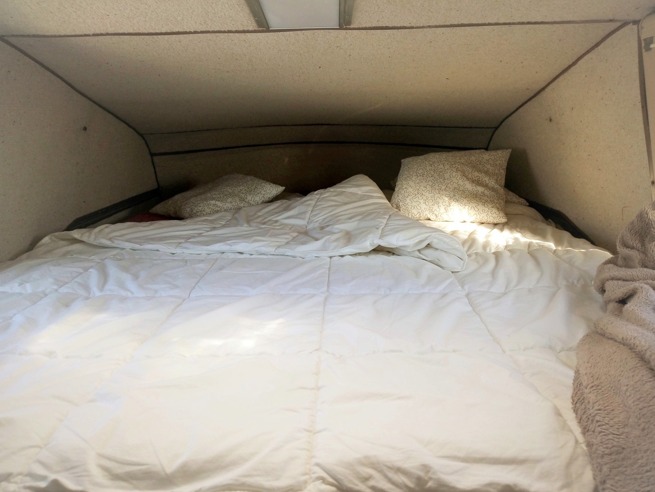 It has a couple bed in the top that can be folded and the living area gets very spacious, and another single bed bettween the seats, perfect for three good friends or a small family.