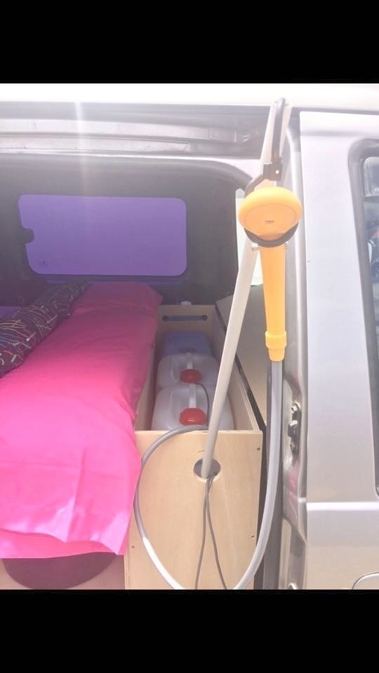 La furgoneta ha sido equipada con todo lo necesario para disfrutar de unas vacaciones sencillas pero sin privarse de algunas pequeñas comodidades que, al mismo tiempo, pueden considerarse esenciales para sentirse a gusto y en todos los aspectos autónomos.