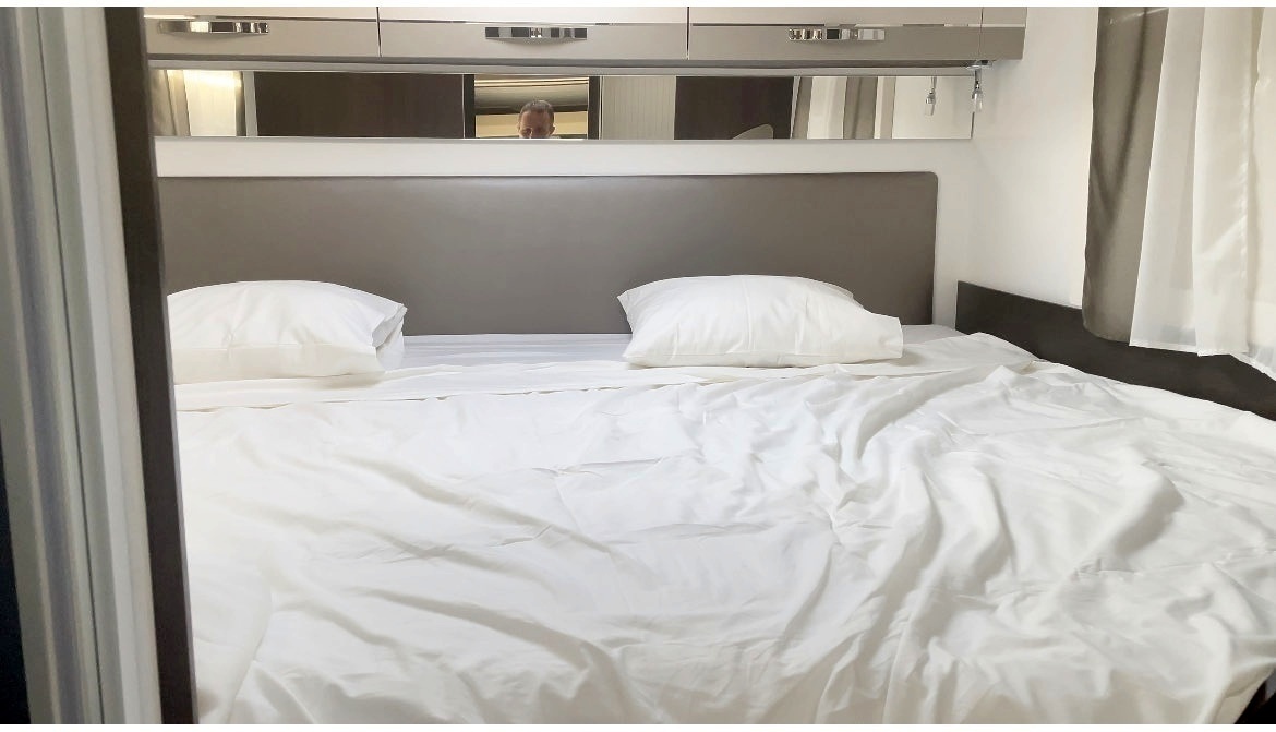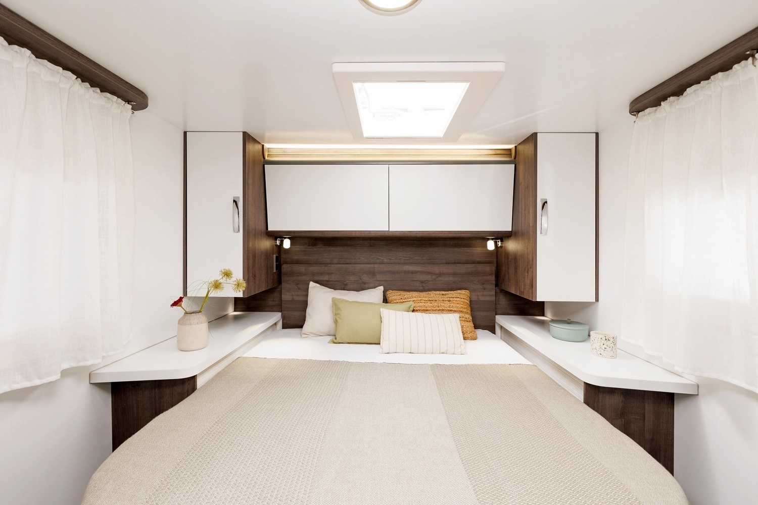 Situada na parte de trás do veículo ao centro. Com acesso por ambas as laterais da cama, este é o tipo de cama que proporciona o máximo conforto.