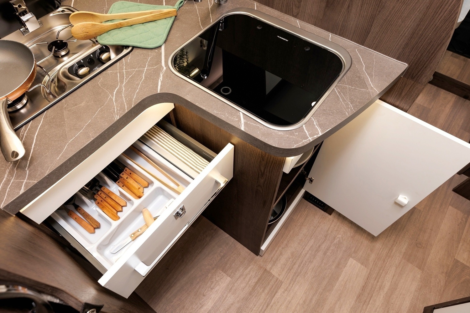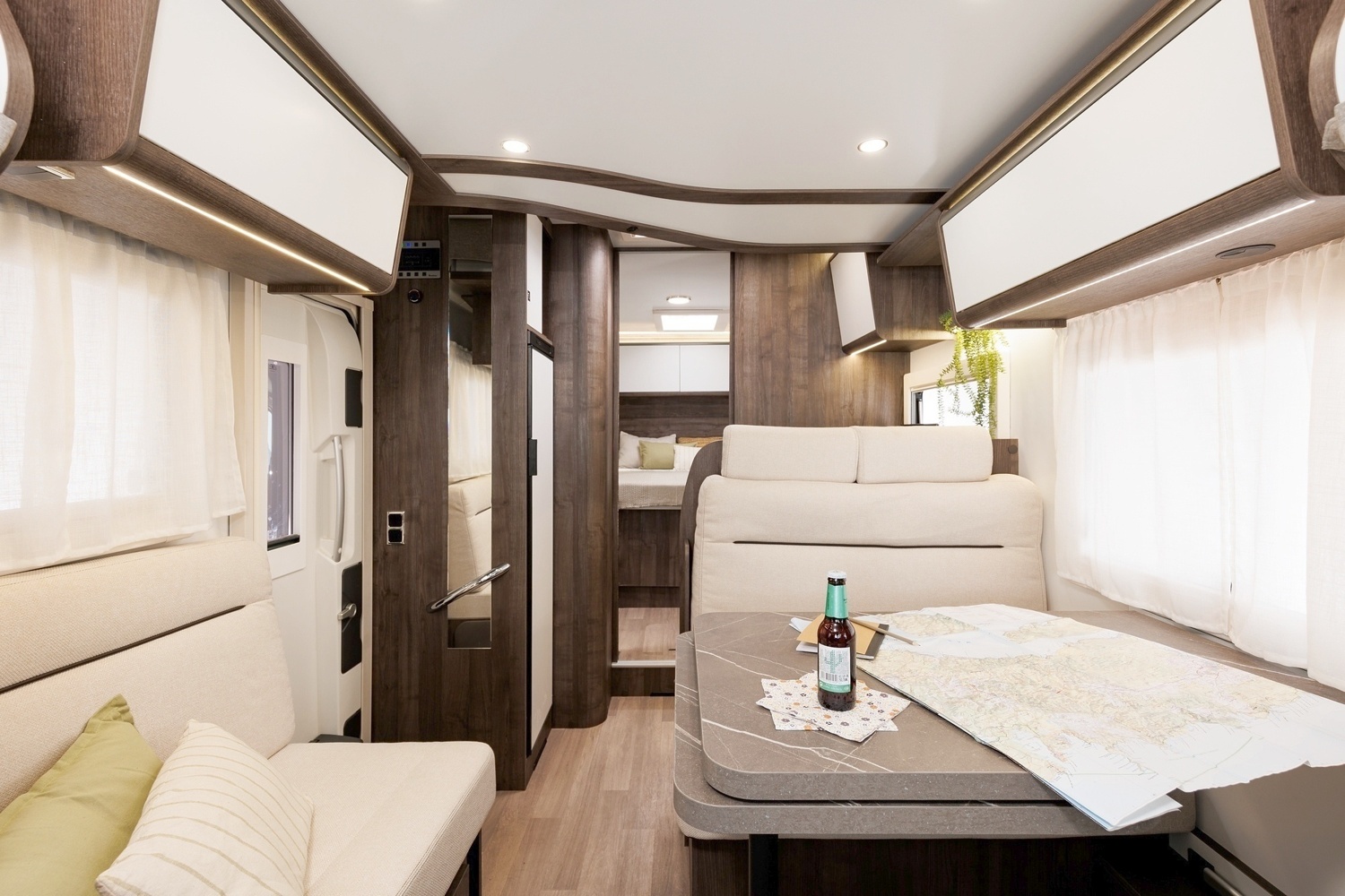 El interior es muy espacioso y su decoracion practica y funcional te cautivaran. Muy luminosa gracias a sus 5 clarabollas y su fantastica iliminacion led, todo pensado para tu maxima comodidad