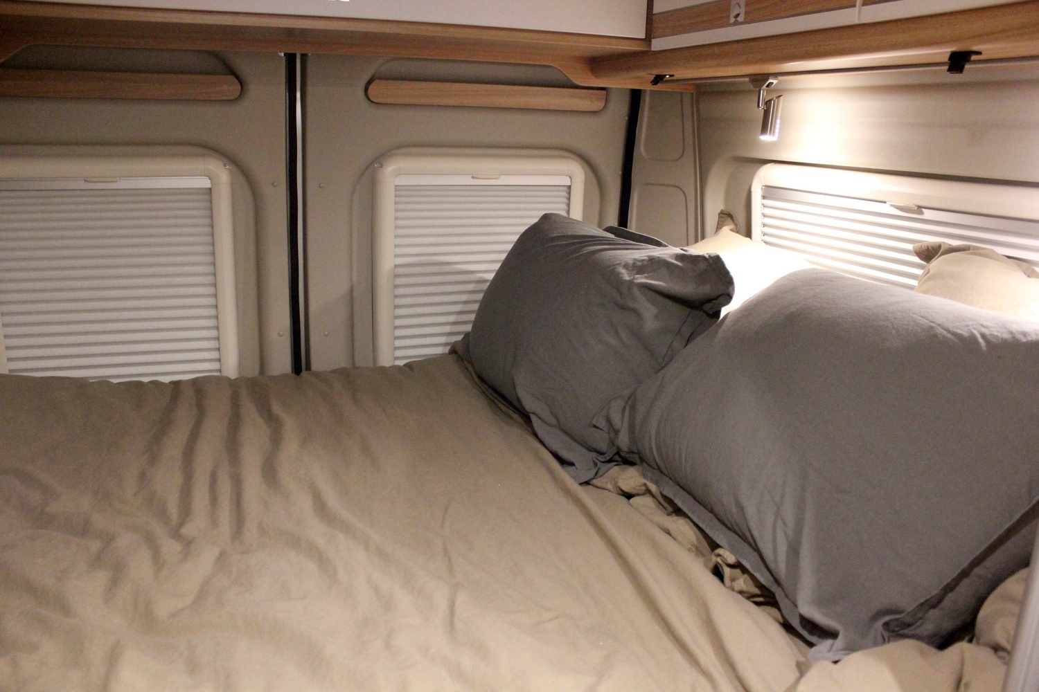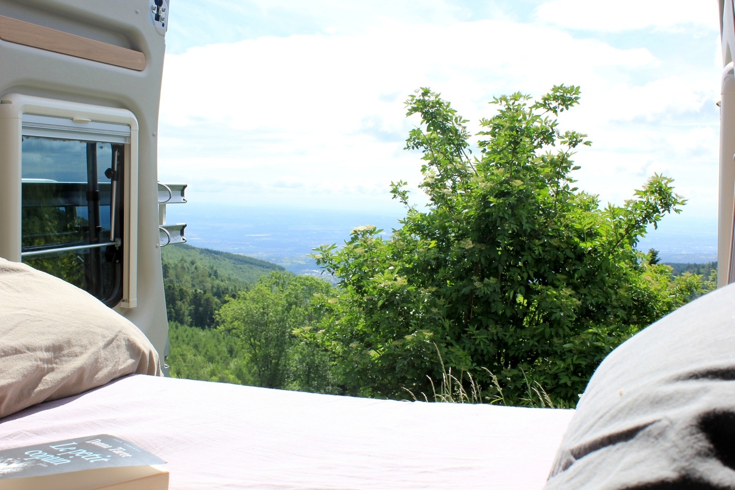 Un grand lit de 1.96 x 1.57/1.37 en transversal avec couette, oreiller et drap en lin fournis.