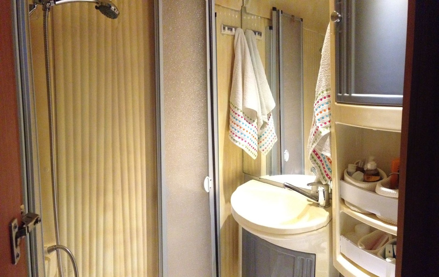 Un lit permanent (1,4m de large), sur la capucine, et un autre couple lit sur la table à manger qui peut être étendu pour accueillir jusqu'à 4 adultes.