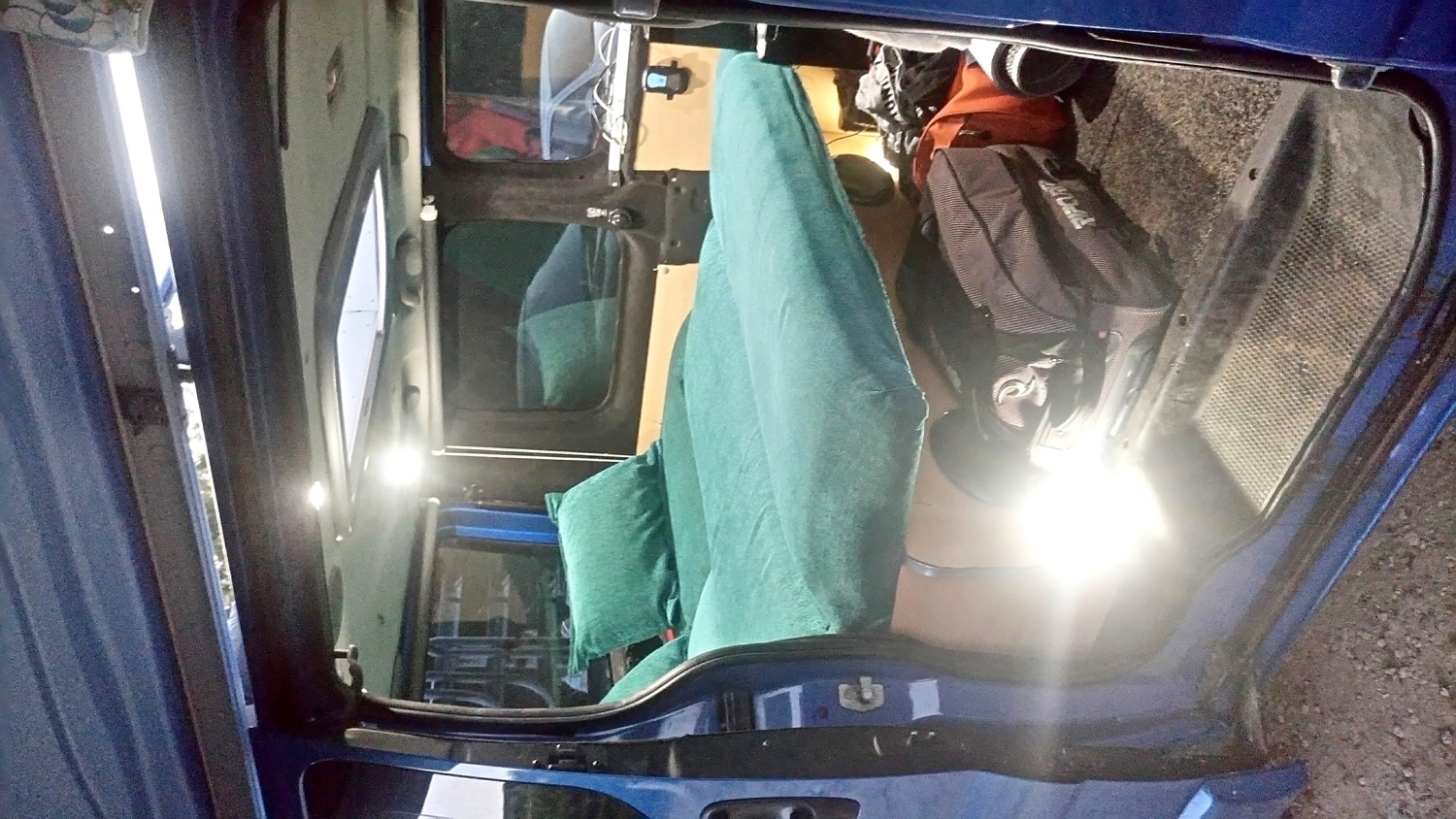 El asiento trasero se despliega y se forma un gran cama de 1,90 largo x 1,80 de ancho.El asiento tiene cuatro posiciones.
