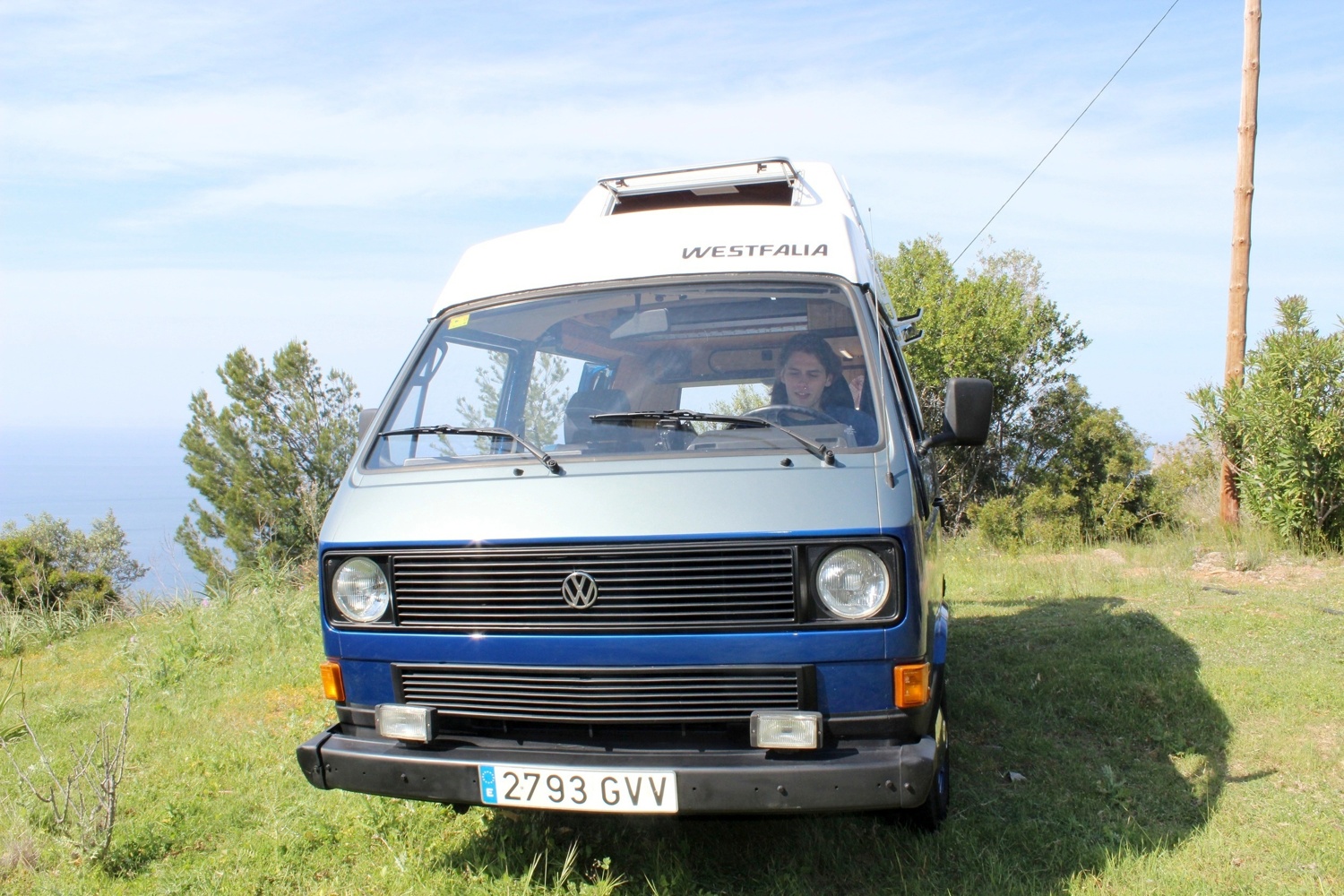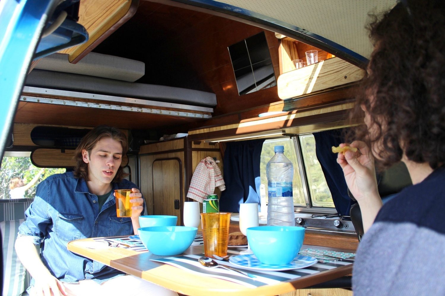 Nuestra autocaravana es una VW California Westfalia del 1982 totalmente restaurada. Tiene las dimensiones perfectas para que sea manejable y disfrutar de la conducción de un clásico. El interior es espacioso y esta bien acondicionado. Dispone de 2 camas dobles (una abajo y otra en el techo), aunque consideramos que lo ideal es para dos personas. Es cómoda, agradable y con carácter. Facilmente se puede aceder a cualquier rincón de la isla y pasar ahí la noche.