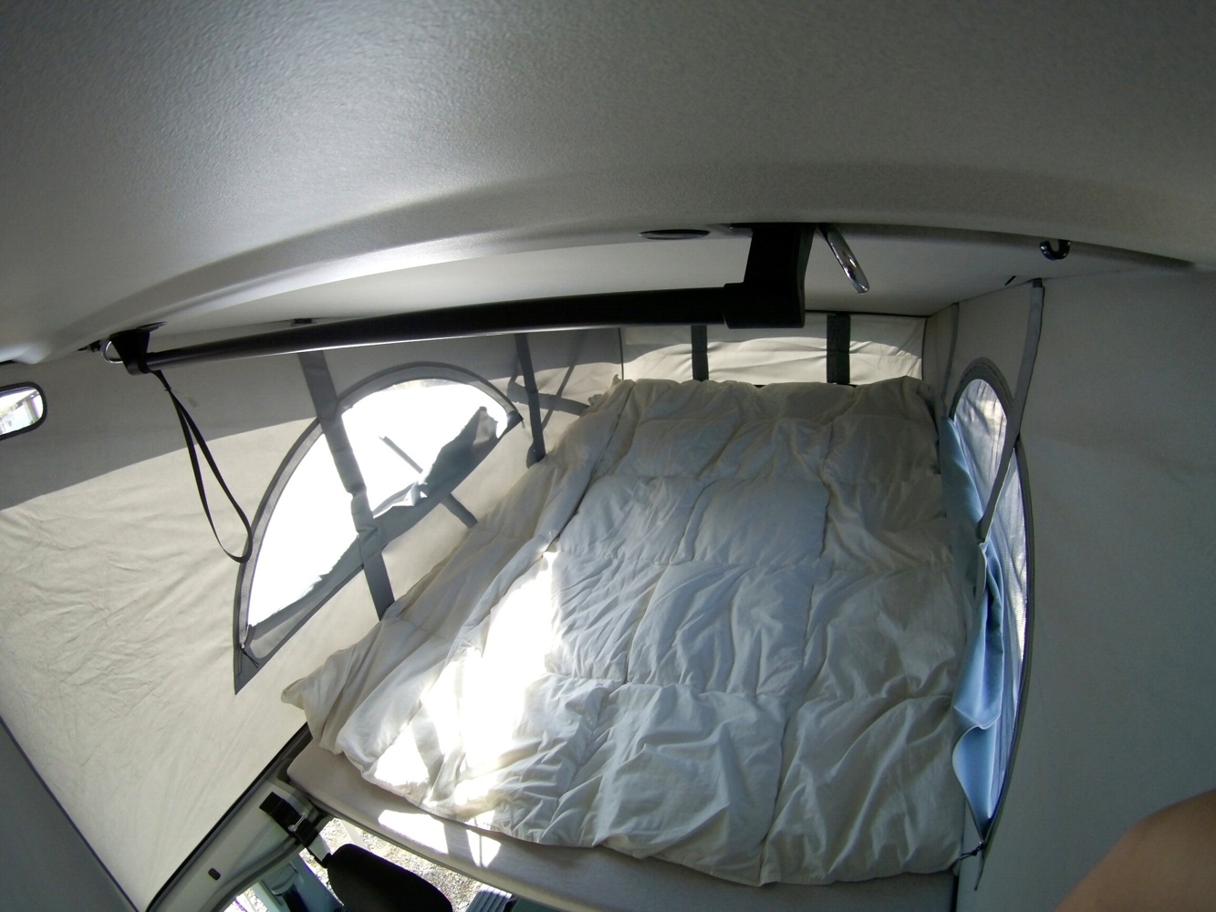 Es muy versátil, ya que tiene dos camas (150x190 abajo y 120x190 arriba) y viajan comodamente 5 personas.